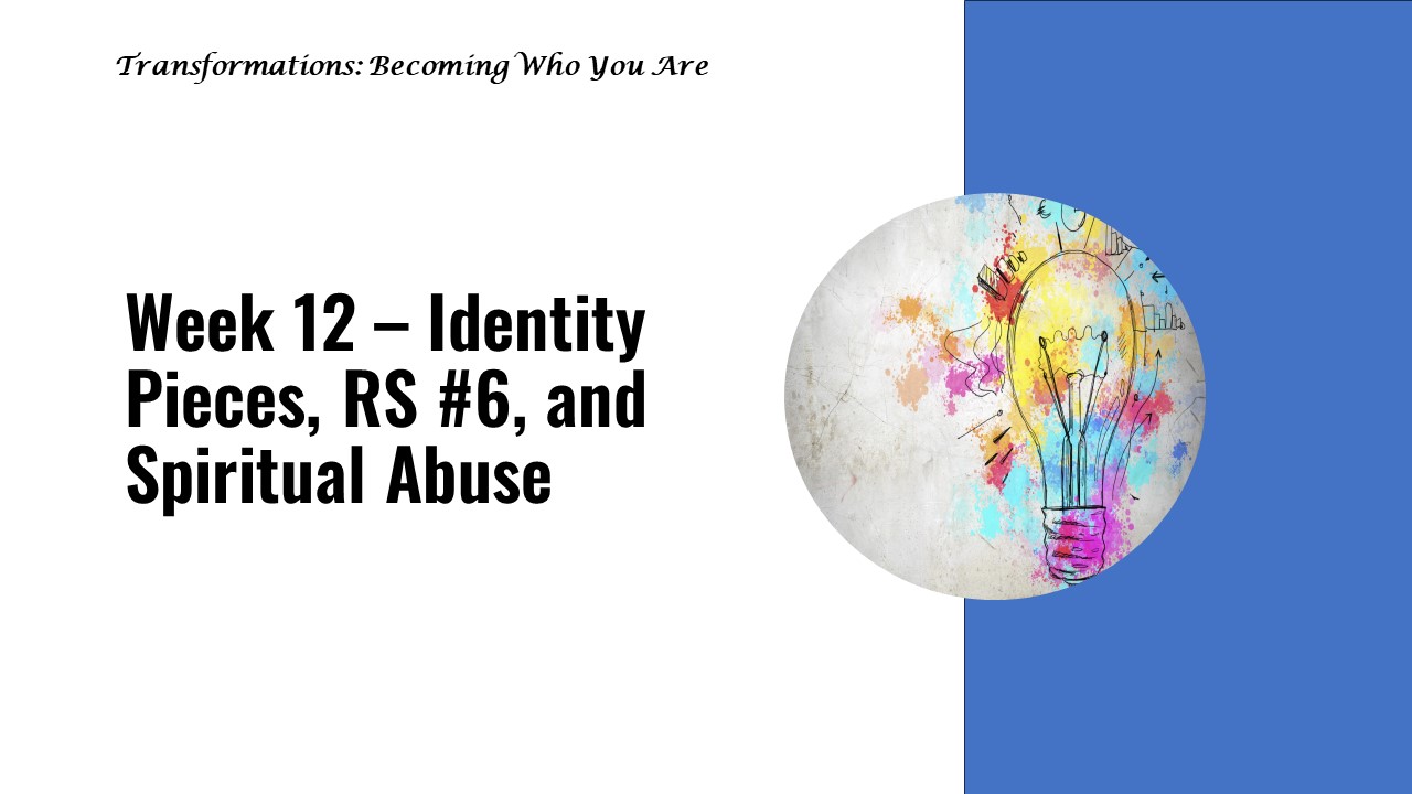 Identity Pieces - Carolyn Weaver Relational Skill #6 Discovering Heart Values - Adena Hodges Spiritual Abuse - Adena Hodges Series 2, Week 13 - RS #7, Gender, and Processes in Healing