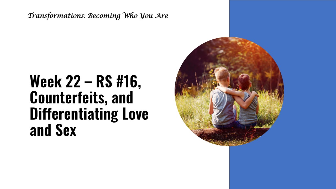 Counterfeits - Pam VandenBulck Differentiating Intimacy and Sex - Pam VandenBulck Relational Skill #16 High and Low Energy - Adena Hodges Shalom My Body Exercises with Chris Coursey (exercises originated with Jim Wilder) Series 2 Week 22 Group Summary Series 2, Week 23 - RS #17, Love & Sexuality, Corporate Trauma